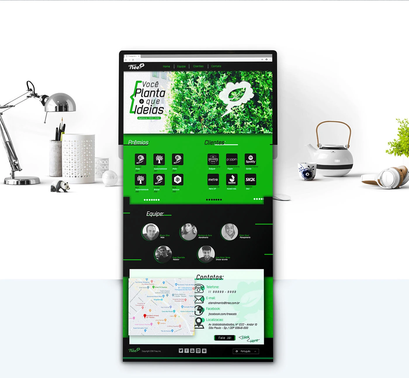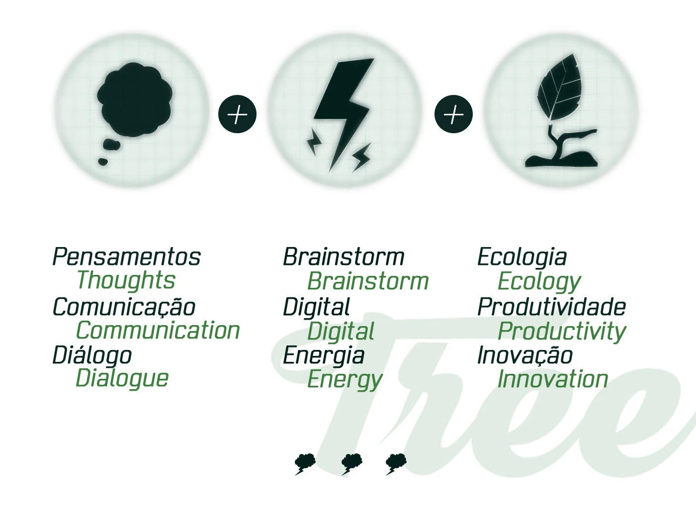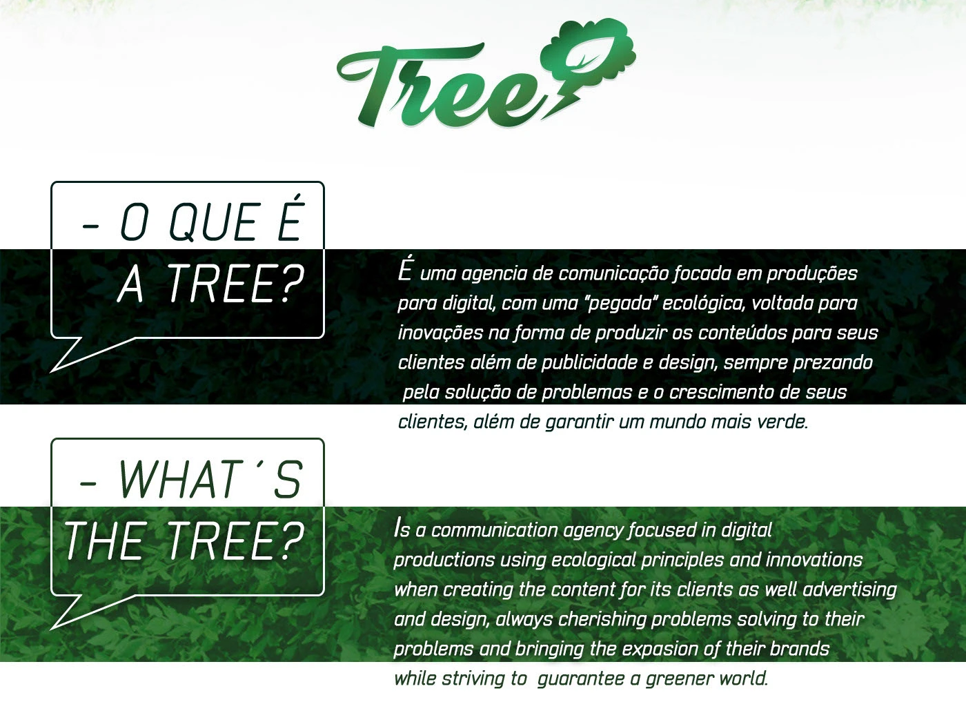 Mantenho o projeto da Agência Tree no meu portfólio com um carinho especial. Desenvolvido em 2015, durante minha graduação, este foi o laboratório onde testei meus primeiros conceitos de branding e direção de arte.